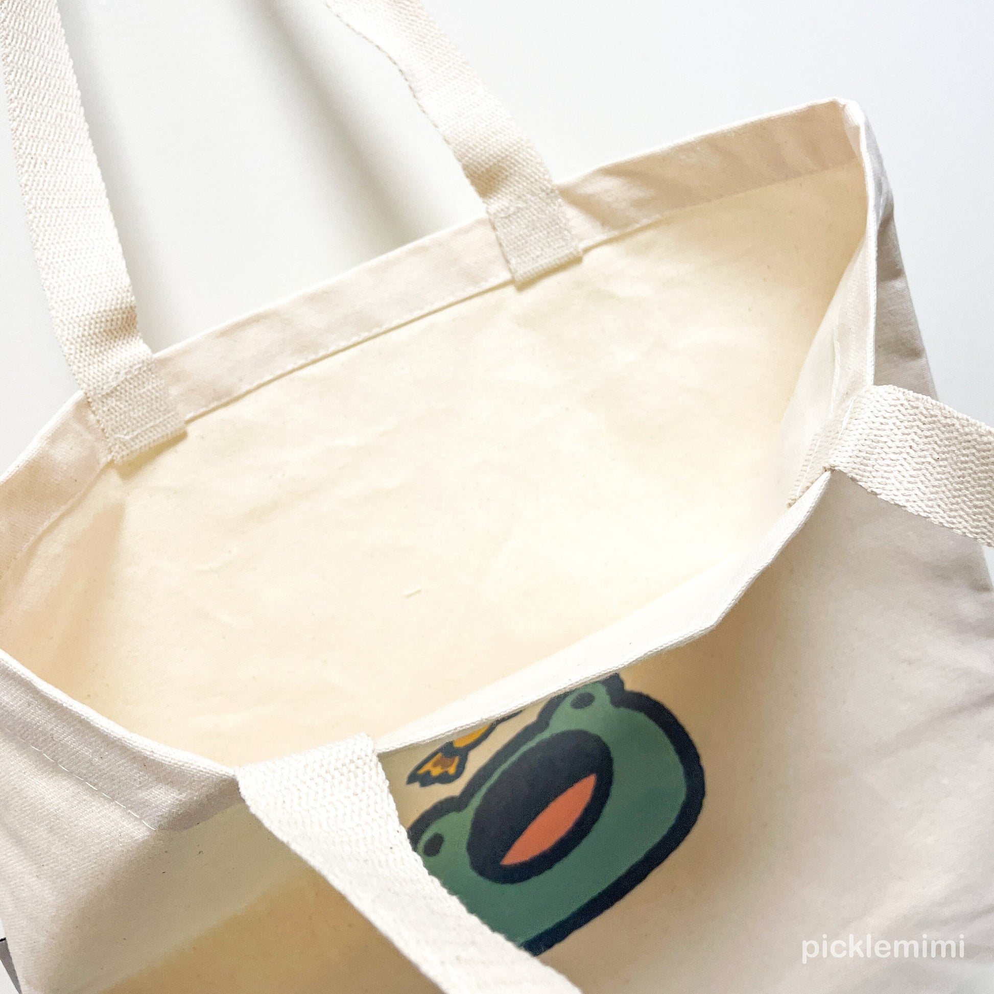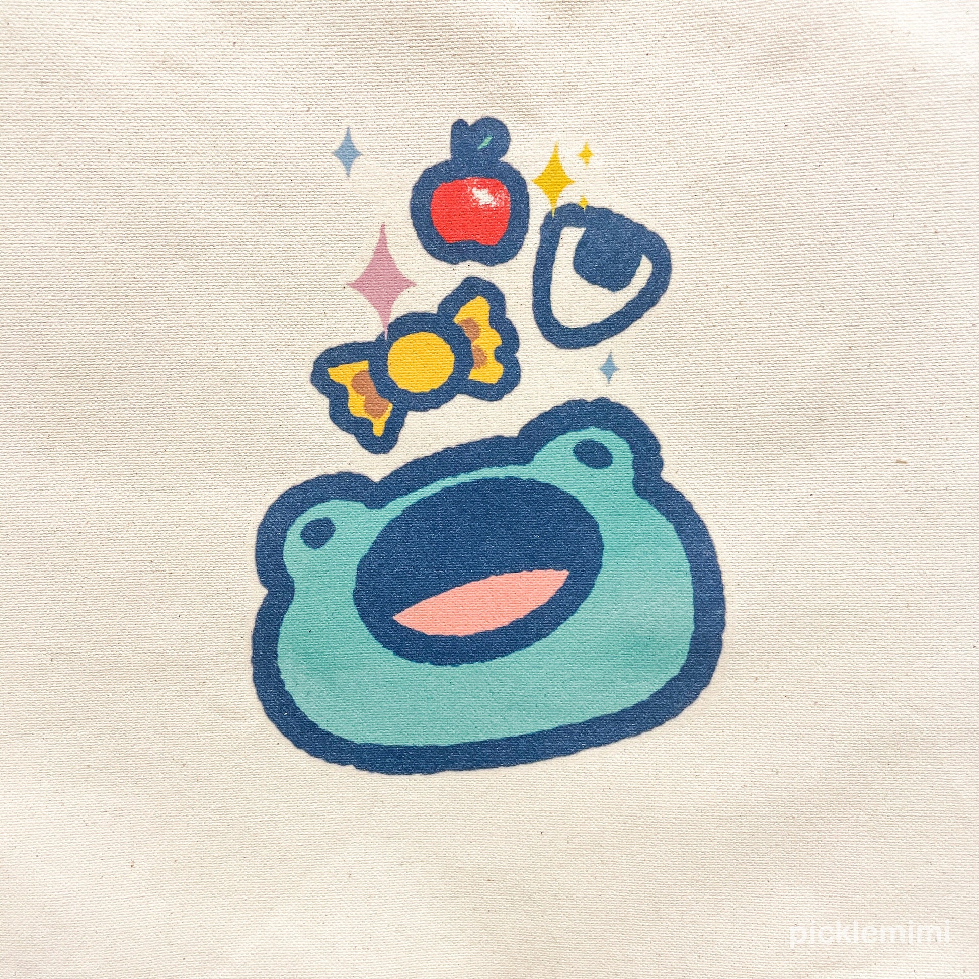 Cute Relatable Frog Eating all the good food on a Eco Friednly Canvas Bag