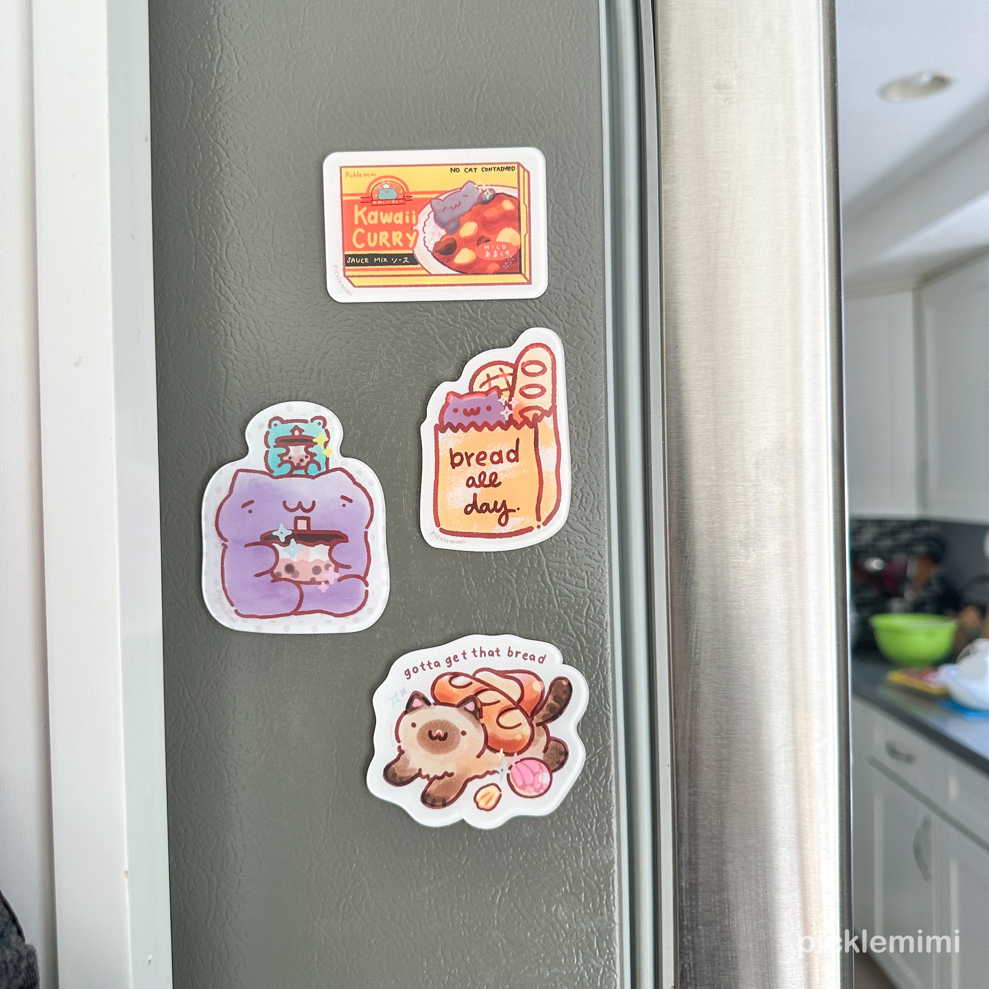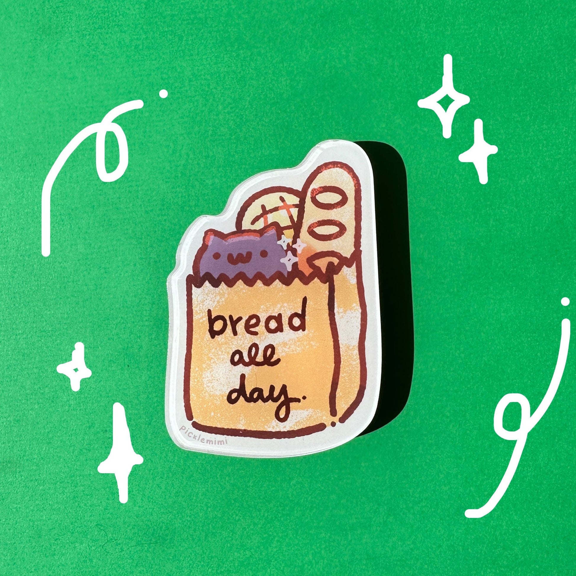 Black cat hiding in brown bag with her fav breads: pineapple bread, baguette, bread loaf