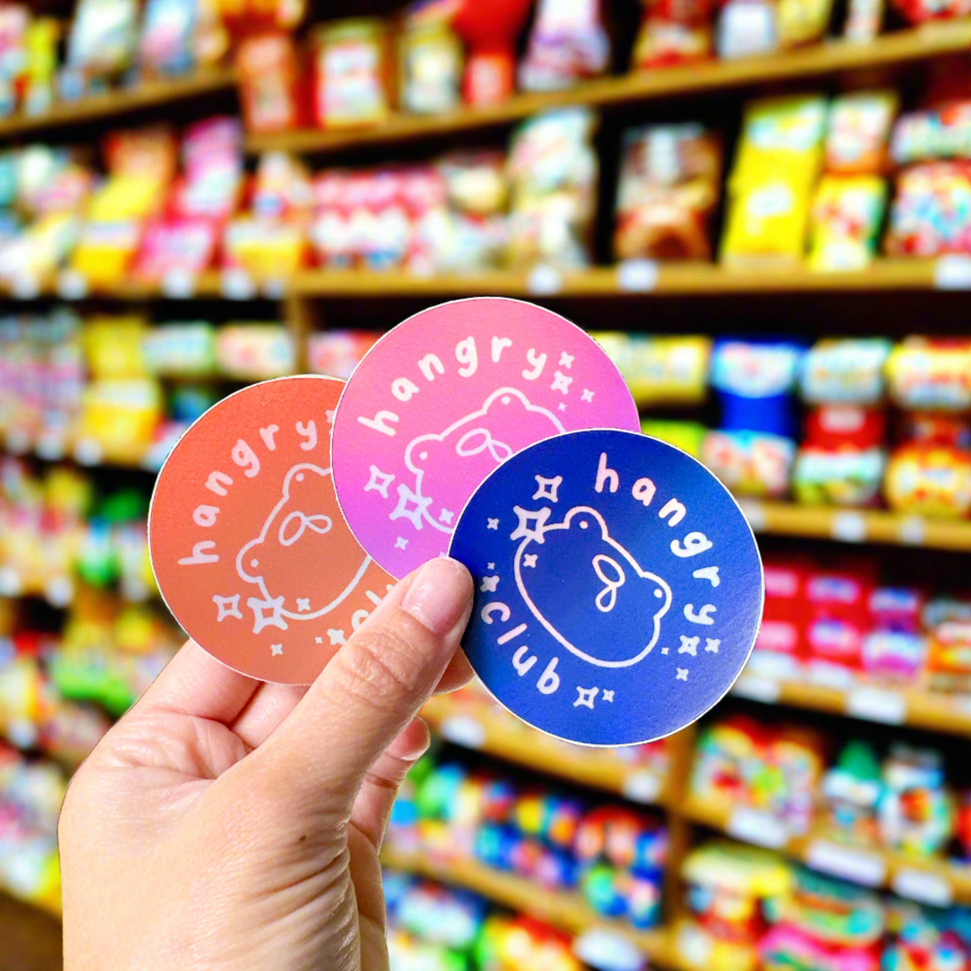 Join the Hangry Club with this fun and quirky frog vinyl sticker! Perfect for expressing your hunger-induced mood, this sticker will add a touch of personality to any surface. Made from long-lasting vinyl material, it's also durable and easy to apply. Keep your hunger in check with this must-have sticker.