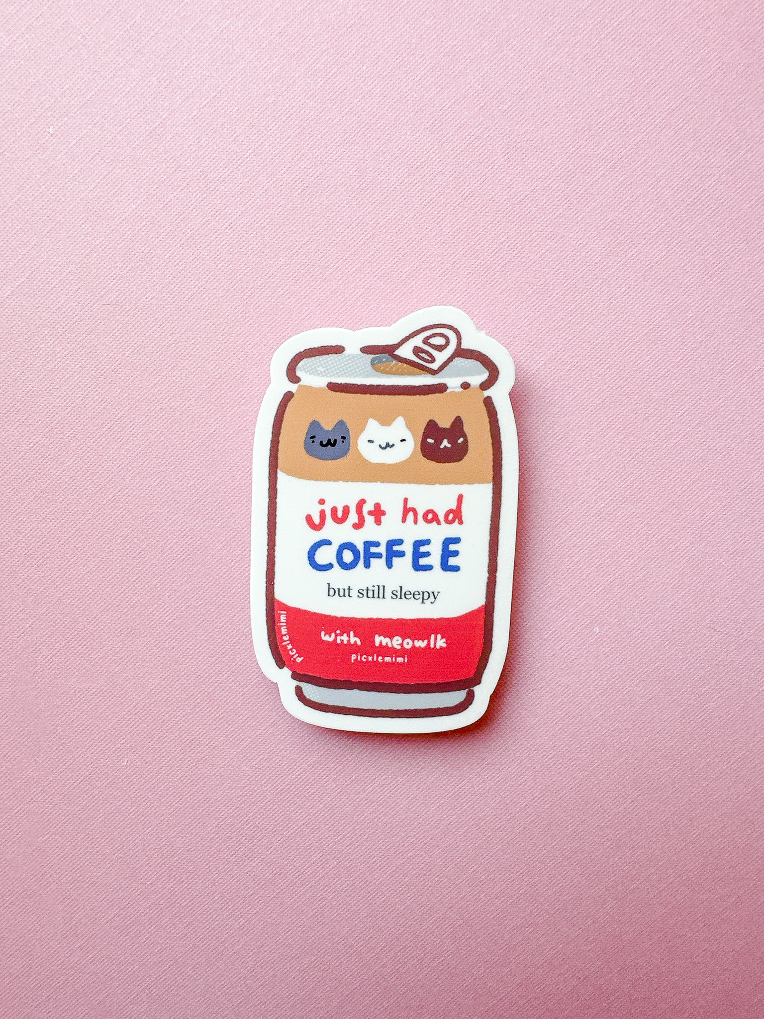 Still Sleepy Coffee Can Cat Drink Vinyl Sticker